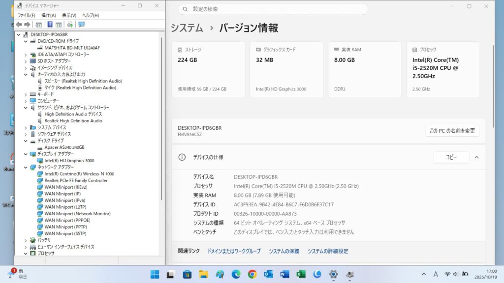 ◆CPU◆ Intel(R) Core(TM) i5-2520M CPU @ 2.50GHz (2.50 GHz)
