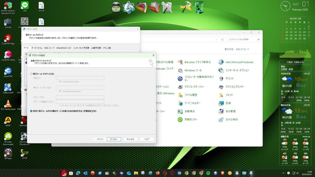 自分で電子メールやその他のサービスを使うための設定をする(手動設定)(M) 次へ(N)