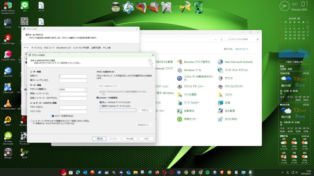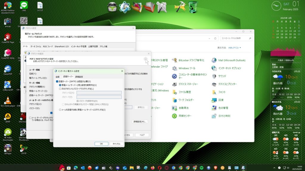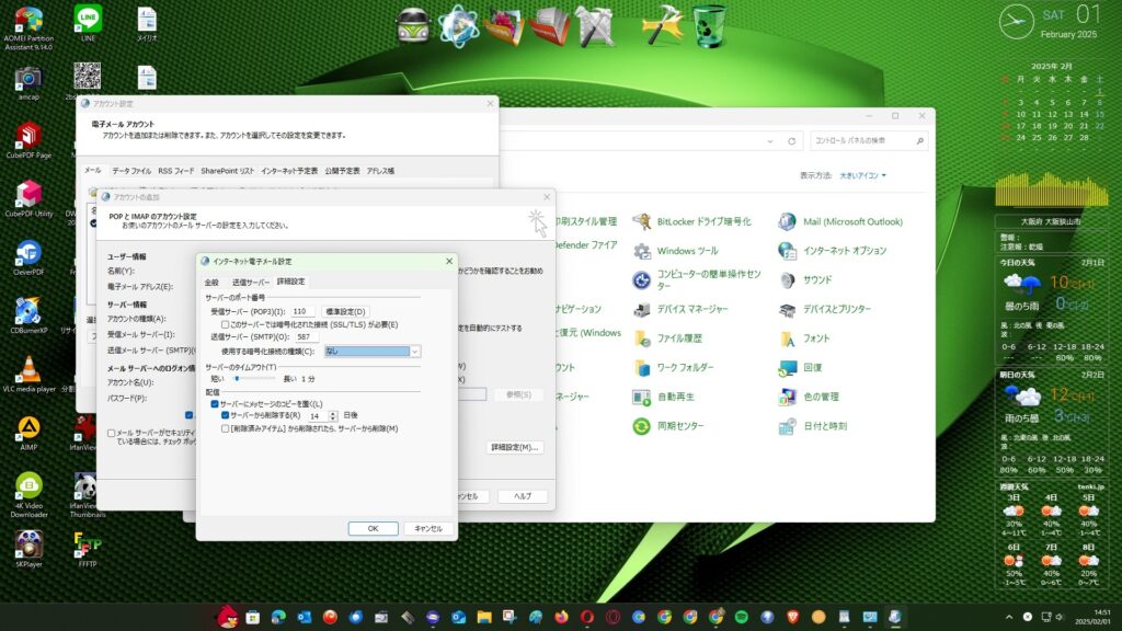 詳細設定 ⇨ POP3 : 110 SMTP : 587